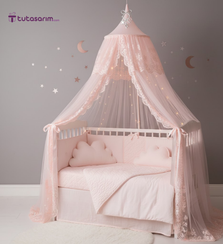 Baby Lüks Tavandan Asmalı Pembe Kız Bebek Beşik Cibinlik