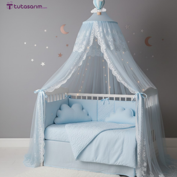 Eğer bebeğinizin odasında tamamen size özgü bir hava yaratmak istiyorsanız, Tutasarım’ın sunduğu özel tasarım cibinlik seçeneklerine göz atabilirsiniz. Kendi isteğinize göre seçebileceğiniz renkler, desenler ve kumaşlarla tasarlanan bu cibinlikler, bebek odasını tamamen kişisel ve özgün bir hale getiriyor. Her detayında sizin dokunuşunuzu taşıyan bu cibinlikler, bebeğinizin odasını unutulmaz kılmak için mükemmel bir seçim.