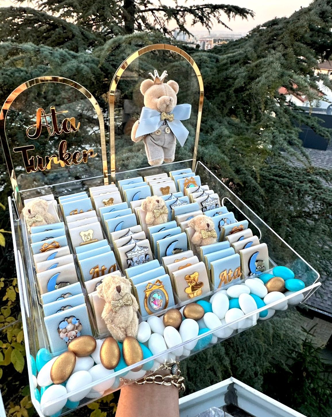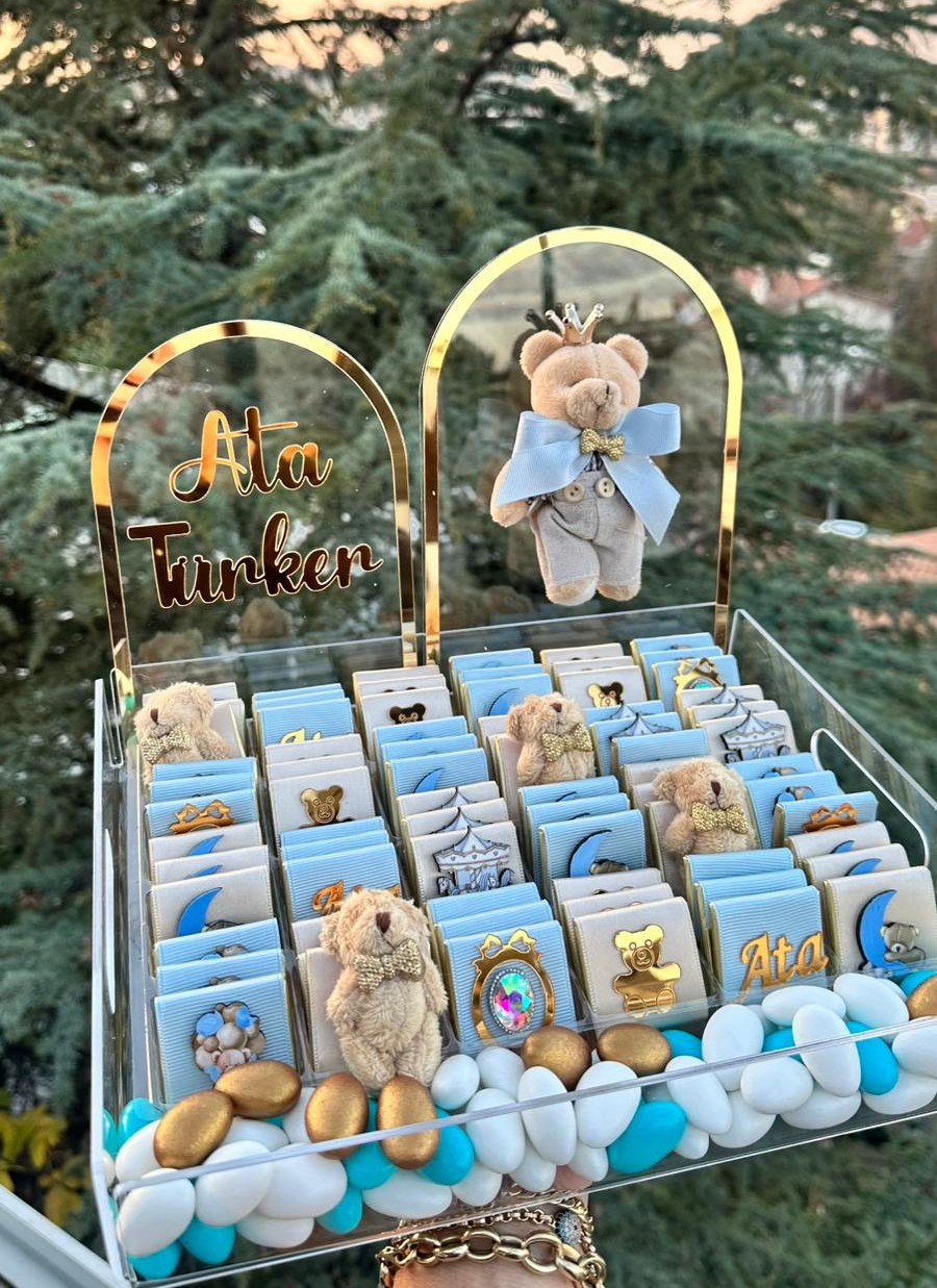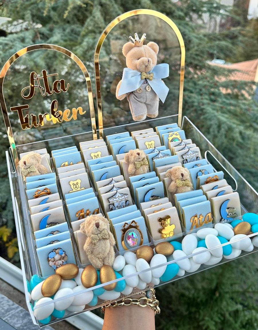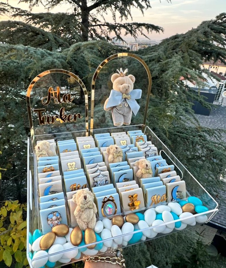 2 adet isim ve ayıcığın oldugu stant ( sonrasında bebek odasında aksesuar olarak kullanabilirsiniz.)