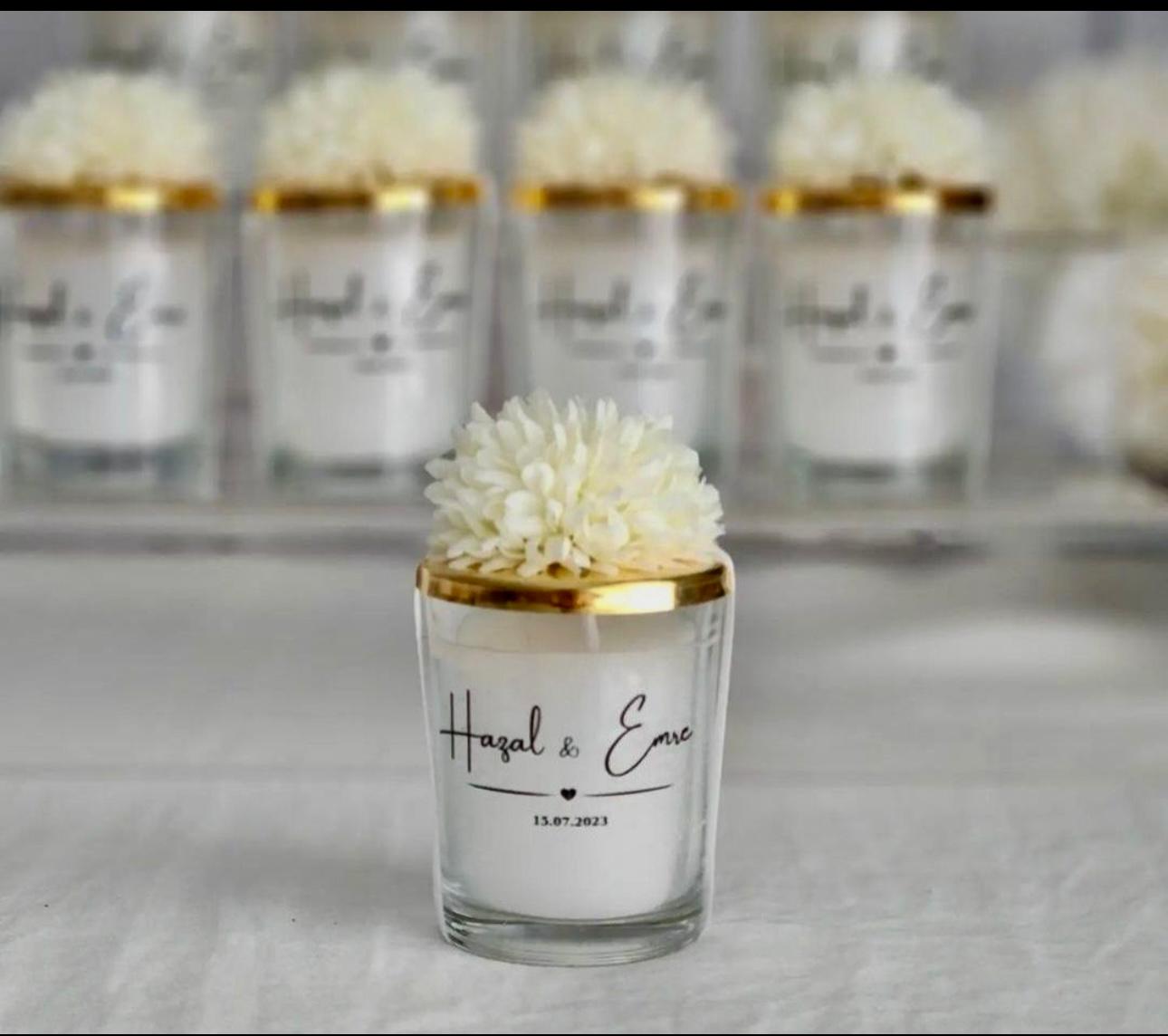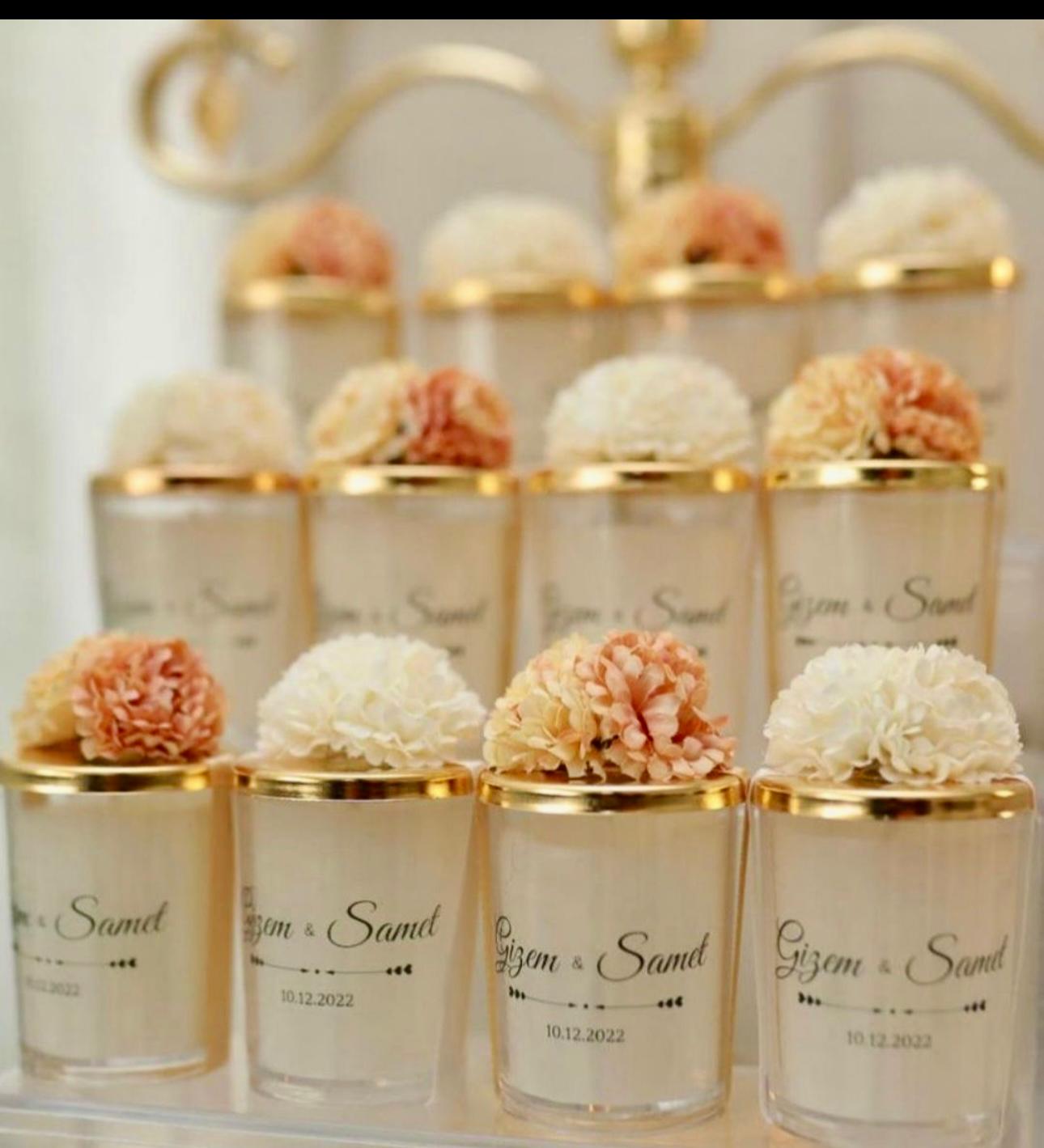 Çiçekli cam mumluk .Mumluğumuz cam üzerinde metal kapağı ve çiçek süslemesi vardır .Etiket kısmına istediğiniz yazıyı yazabiliyoruz . Şık ve asil bir hediyedir. Misafirlerimizin çok hoşuna gidecek kullanışlı bir hediyedir