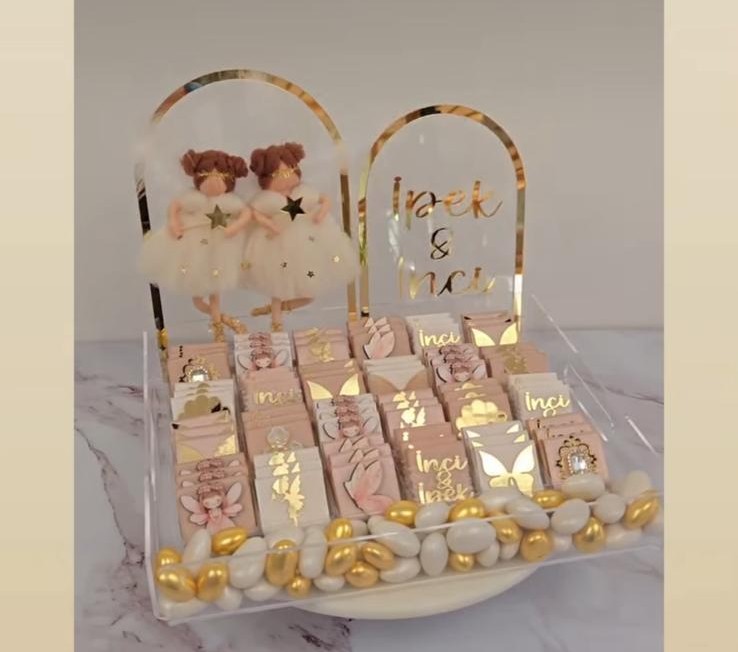 2 adet stant bırınde bebeğimizin ismi diğerinde peri kızlarının bulunduğu