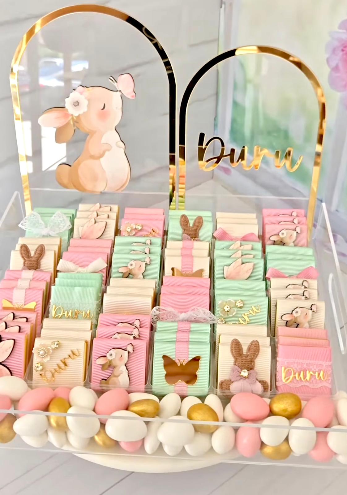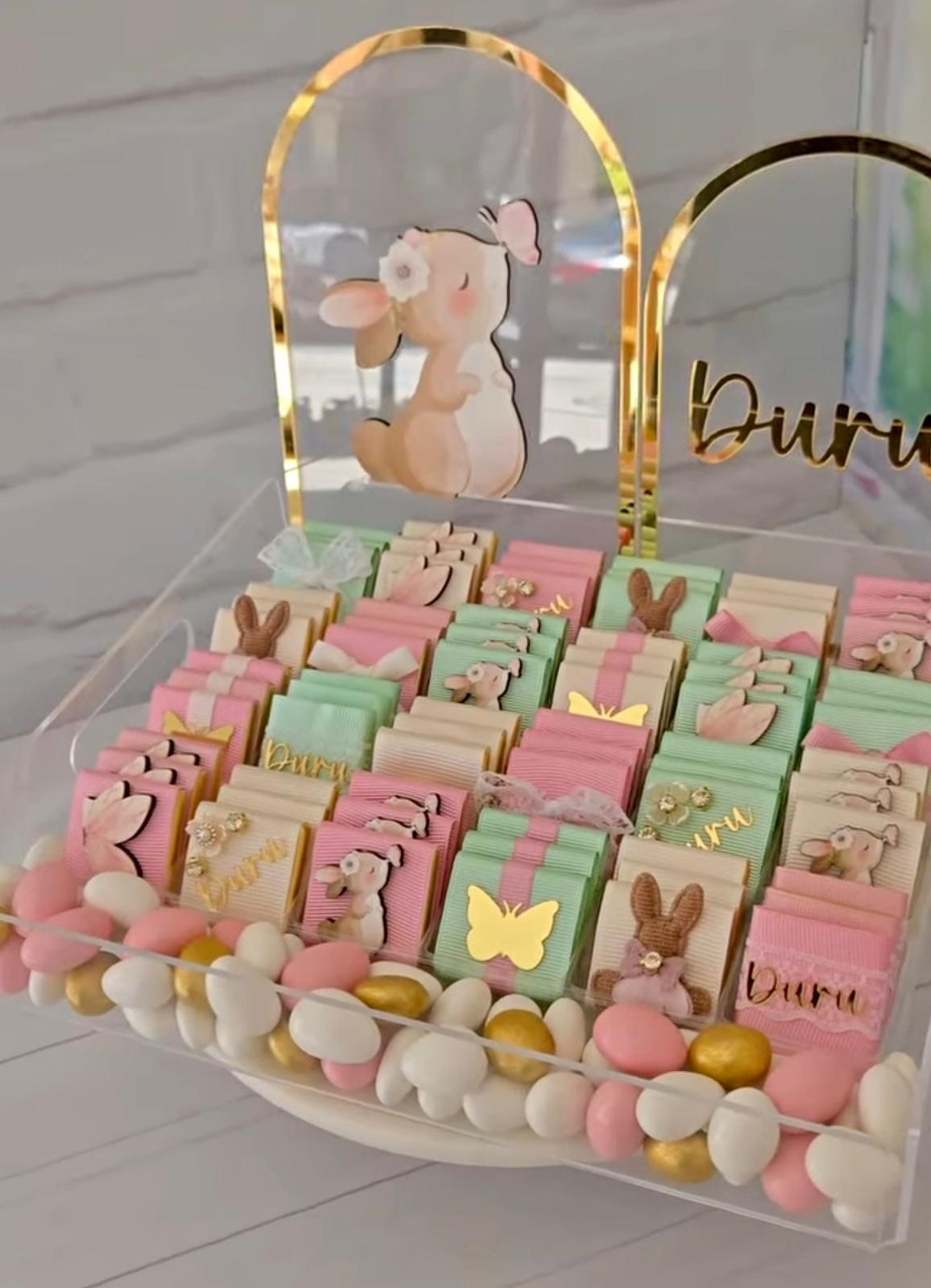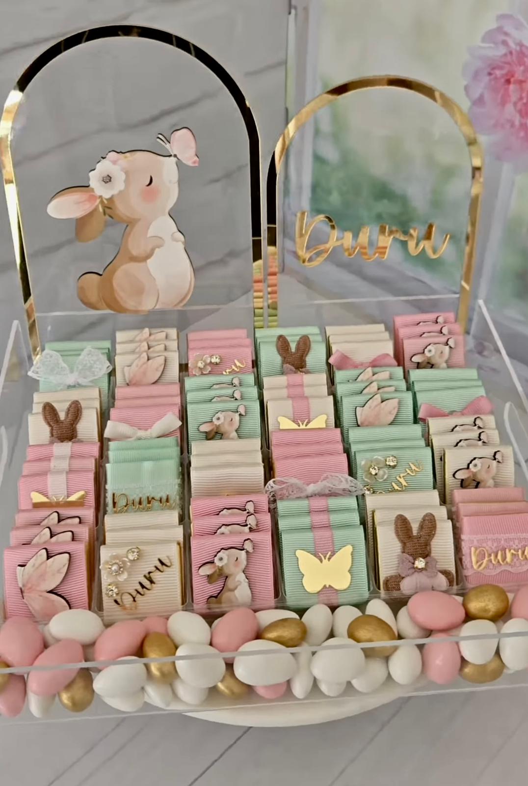 2 adet birinde görsel diğerinde bebeğimizin ismi olan stant mevcut sonrasında bebek odasında süs olarak kullaniliyor.