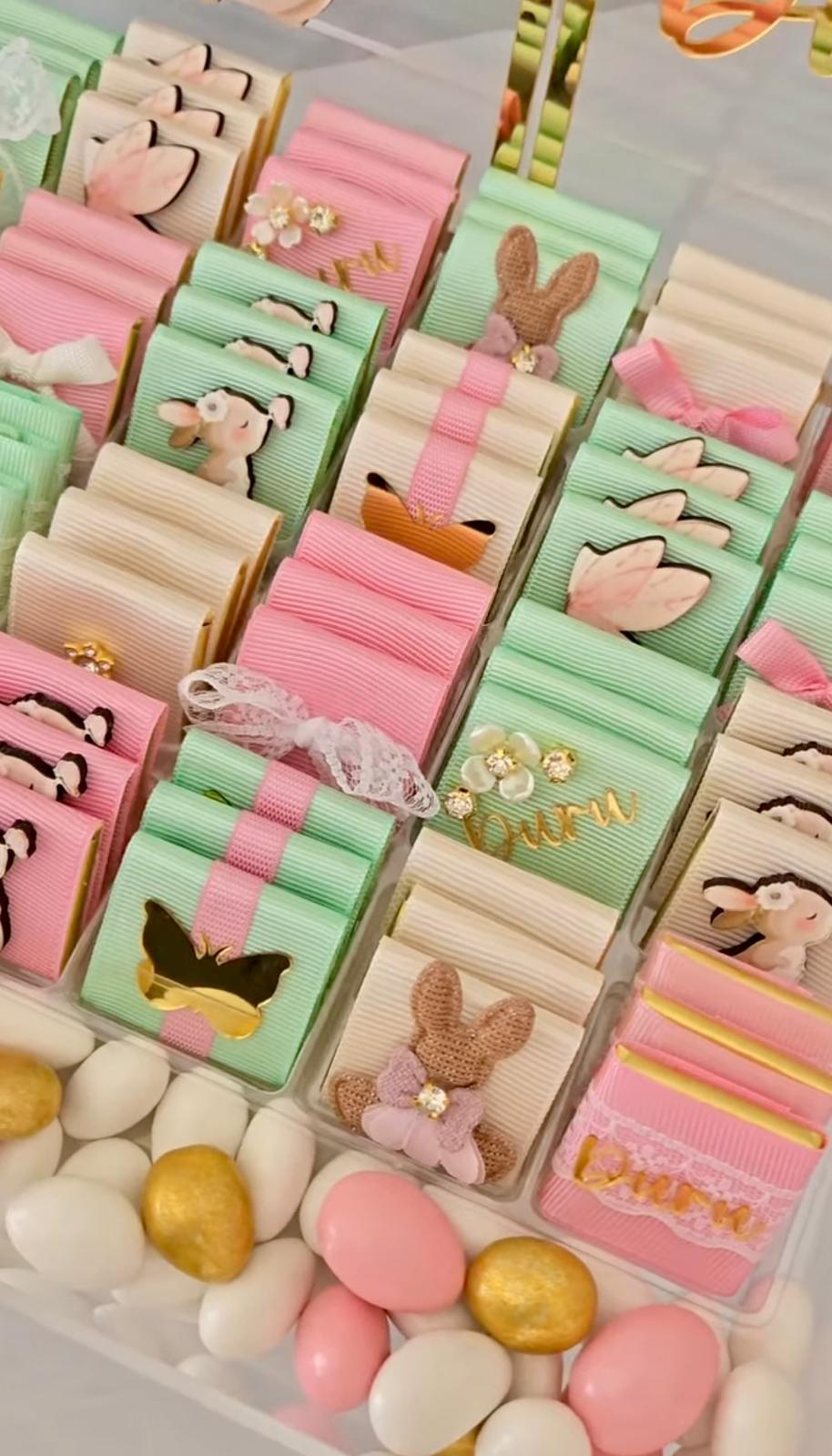 Çikolata kutusunda 72 adet süslü madlen çikolata mevcuttur.
